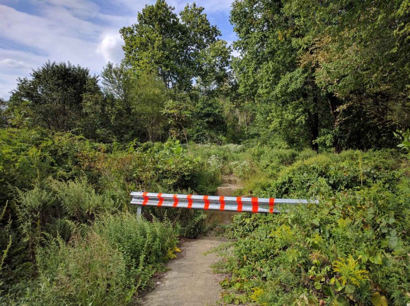 If you've explored the nooks and crannies of the preserve's trail system, you may have seen a blocked-off area in the southeast corner pictured here. Why is there a dead-end asphalt trail here?