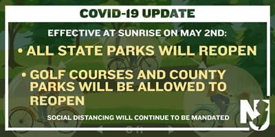 Per Governor Murphy's Executive Order 133, State Parks will reopen at sunrise on Saturday, May 2nd. Since Tall Pines has no buildings or other facilities, all parts of the park will be available.